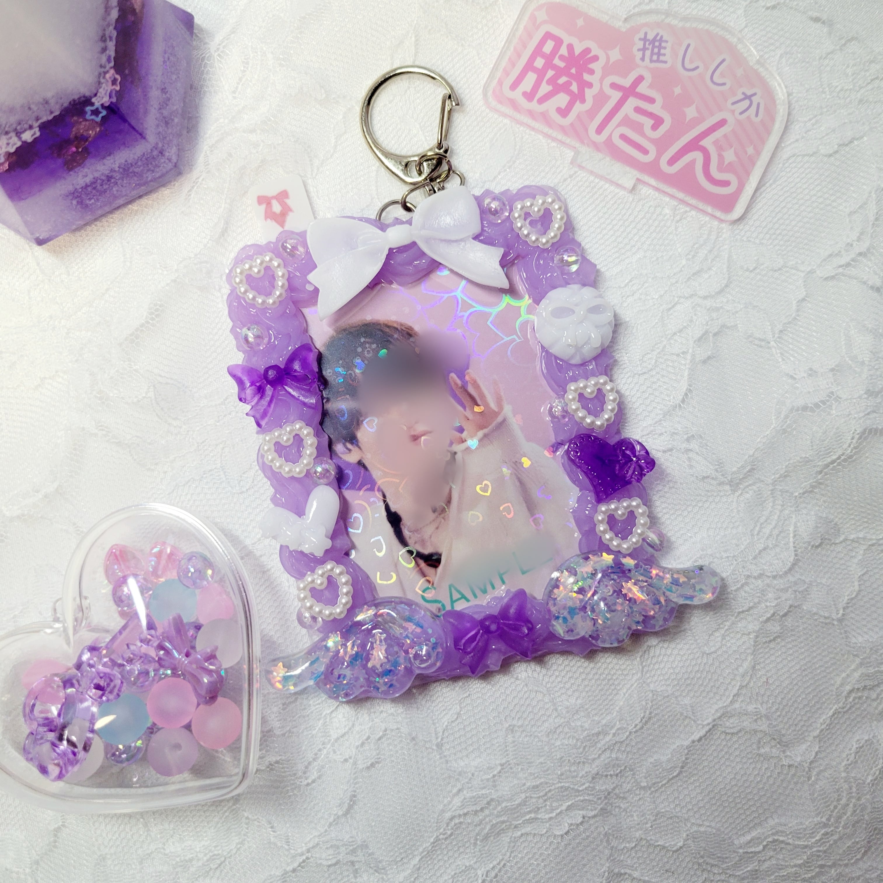 リボン、ハート、パールなどをたっぷりと使用し、大切な推しのトレカを華やかに演出♪