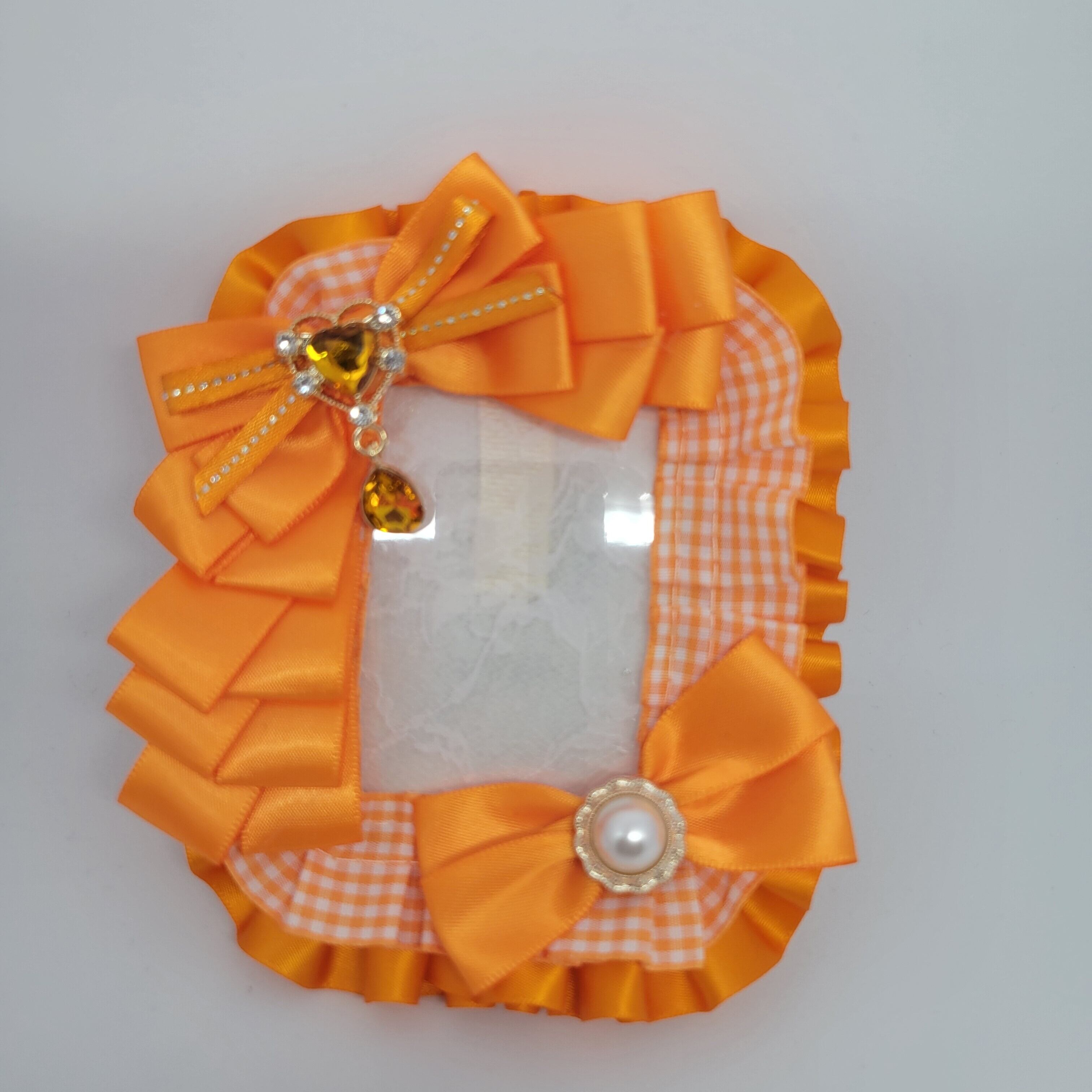 ♡【推し活デコトレカケース -オレンジ×ギンガムチェック×レース】♡